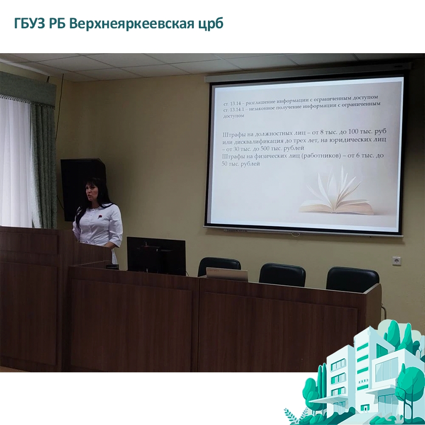 Старшая медицинская сестра Назырова Н.З. затронула важную тему защиты персональных данных и медицинской информации о пациентах. Она напомнила, что сведения о состоянии здоровья требуют особого уровня защиты и обрабатываются преимущественно с письменного согласия человека, за исключением случаев, предусмотренных законом.