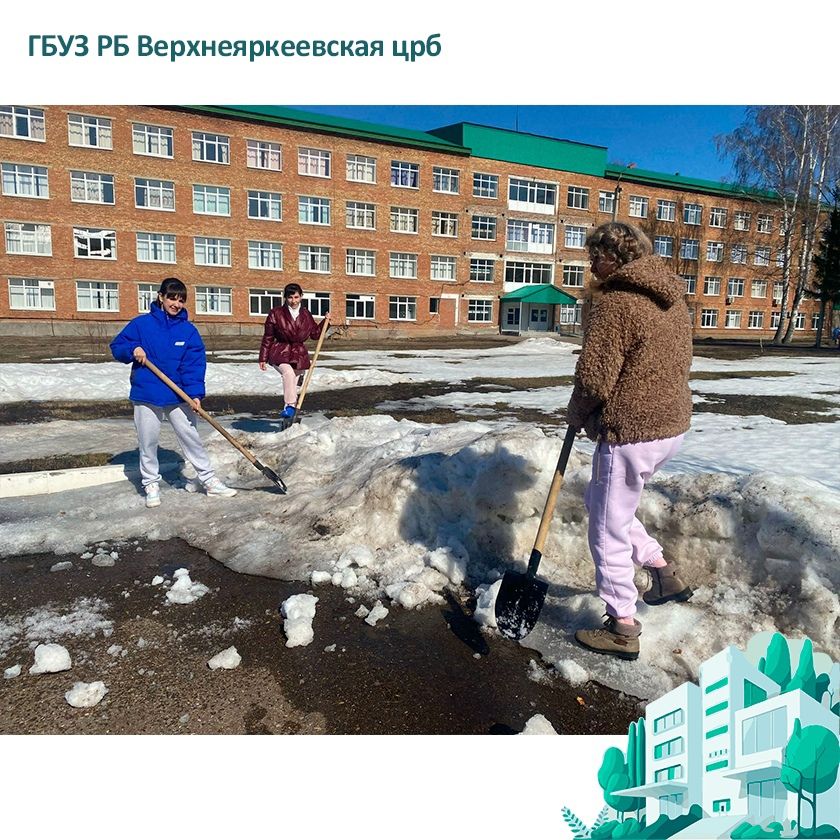 Кто-то расчищал снег, другие проводили работы по удалению льда и наледи, чтобы быстрее наступило таяние. Были и те, кто заботился о чистоте, собирая мусор.