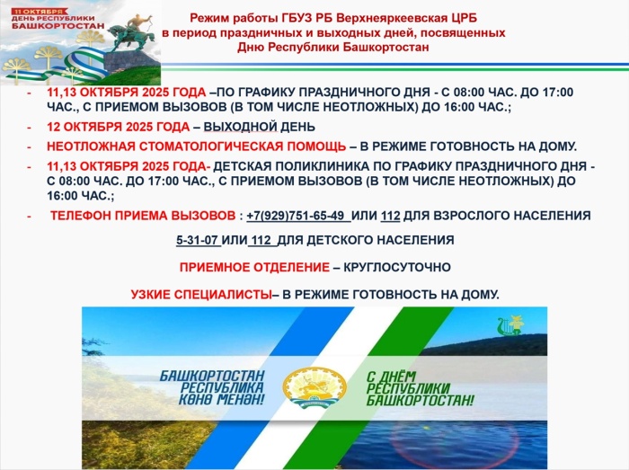 11 и 13 октября 2025 г. — работаем с 08:00 до 17:00.